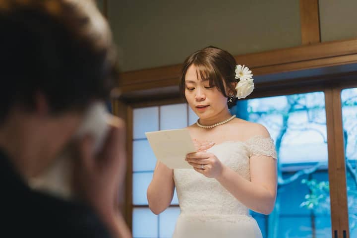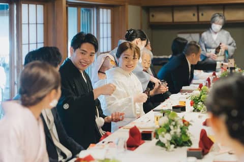 親族だけで結婚式を実施する形でしたので、厳かな感じではなく、親族みんなで食事会をする、といったような雰囲気を目指しました。披露宴の内容もいたってシンプルで、親族同士の会話を楽しんでもらいたいと思いました。特によかったのはべたですが、両親への手紙をみんなの前で読み上げる時間を設けたことは親族からも好評でした。人力車に乗って移動をしましたが、和装ならではの演出で、一生に一度の経験ができたこともよかったと思います。