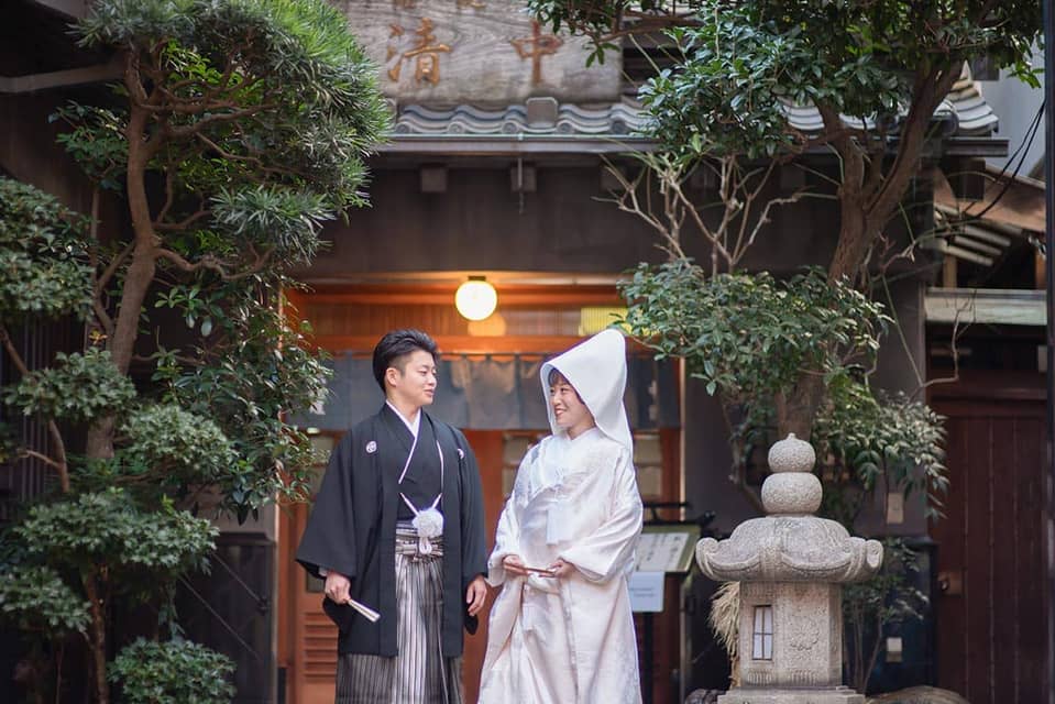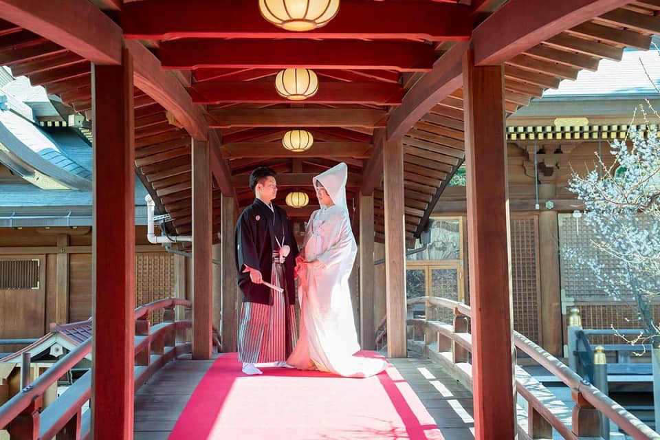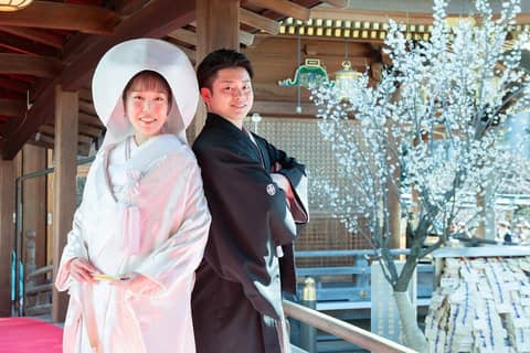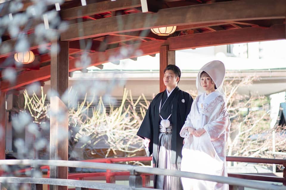 湯島天満宮では学問の神様である菅原道真公をお祀りする由緒ある神社でありながらも、静かで落ち着いた空間の中で式を挙げることができます。そのため親族のみで行う式にふさわしいと感じました。また他の神社と比較して参進する距離が短く、段差も少なめで、屋根があるため天候にも左右されません。私たちは2月の中旬に式を挙げましたが、境内の梅の花も綺麗でした。
