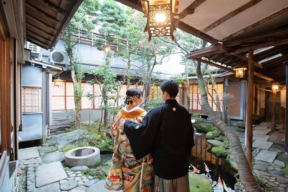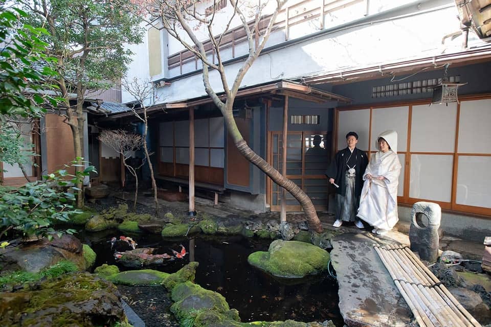 会場では中庭の景色を楽しみながら食事をとることができ、老舗らしい重厚感のある落ち着いた佇まいは訪れる人を温かく迎え入れてくれるような、歴史を感じさせる外観となっています。
