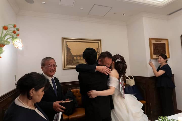 新婦父が「バージンロードを歩いてみたい」という希望を持っていたのですが、今回は神前式だったため、バージンロードの代わりに、披露宴の入場時に、新郎父と新婦で、会場の廊下を歩いてから一緒に入場しました。とても喜んでくれ、いい思い出になりました。