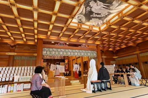 また、雅楽の生演奏や巫女さんの舞など神前式ならではの経験ができることも決め手となりました。