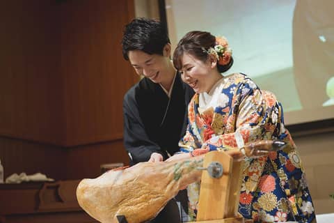 今回ケーキ入刀はせずに、生ハム入刀を実施したのですが想像よりゲストの皆様からご好評いただき盛り上がったため、大満足でした。